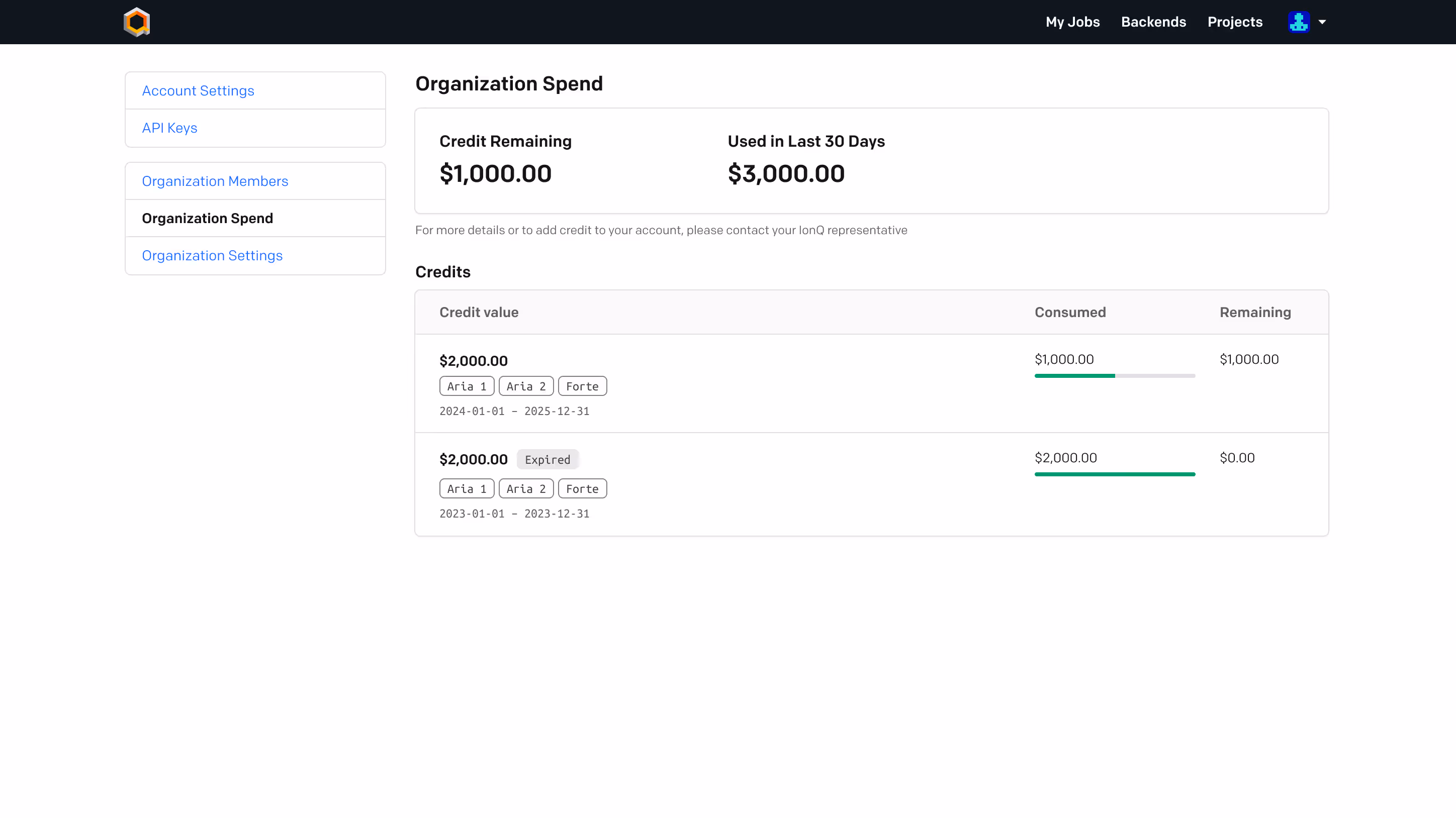 The IonQ Quantum Cloud meets enterprise needs with organization management features for user management and administration, project management, and usage reporting—across a single organization, or many.